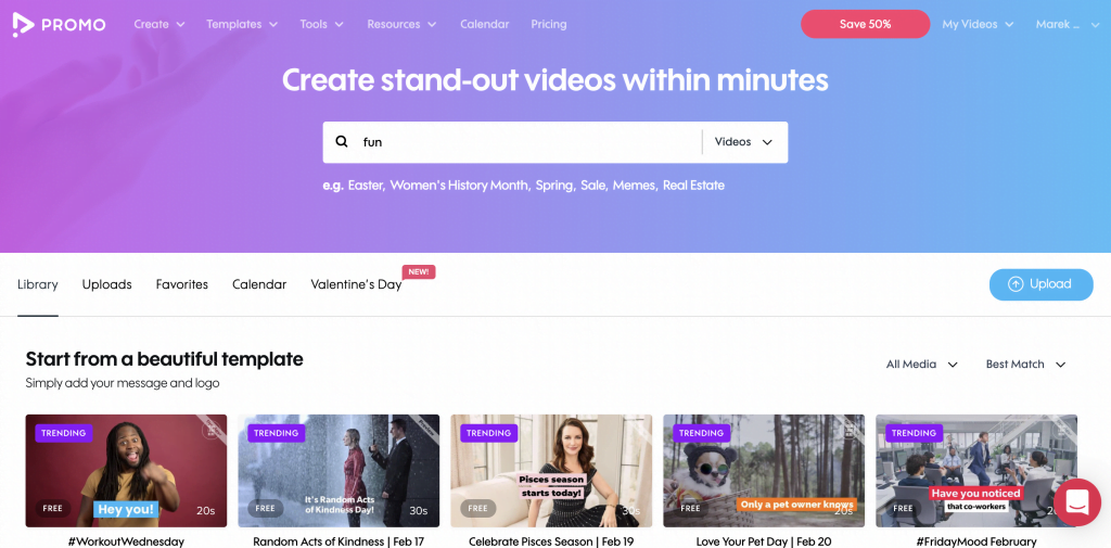 In terms of creating video content and engaging your followers, Promo is such a good platform for it. You can choose from thousands of ready-made templates and videos. It works with small businesses, marketing agencies, real estate agencies, e-commerce, and more.
