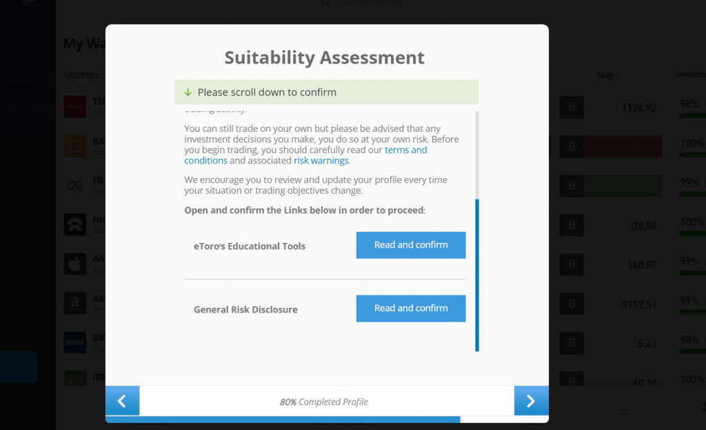 - 12th – Now you must answer this next question, which as you can tell is very important, given the fact that etoro will restrict the number of products they offer you, in regards to your experience. Again, an important fact the platform must have in consideration;