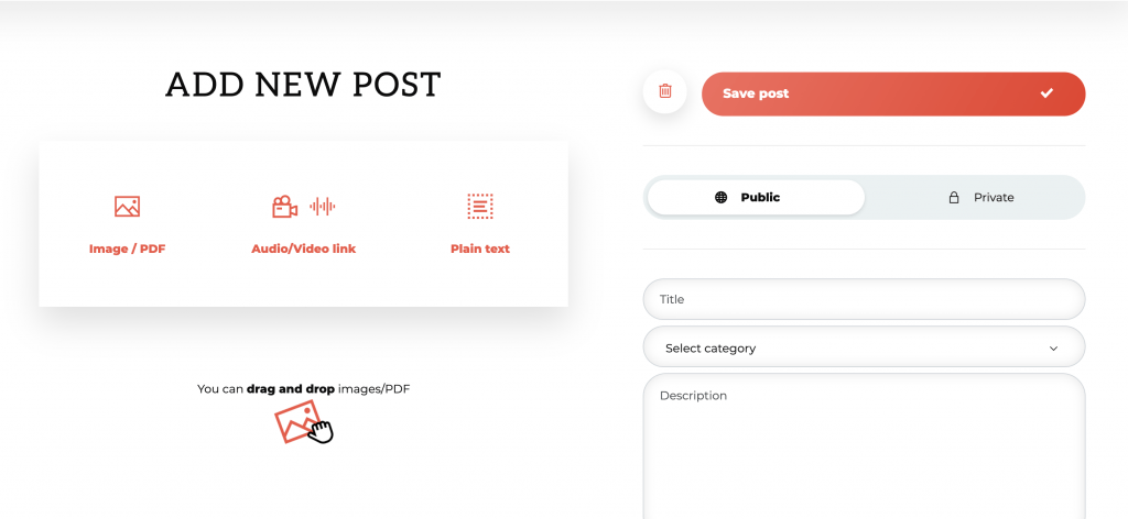 The second option: Latest Post you will be able to upload your content in different ways and Select the Category that fits more on you. There is plenty of categories such as Body Art, Music, Film, Writing, Performance, Design…etc