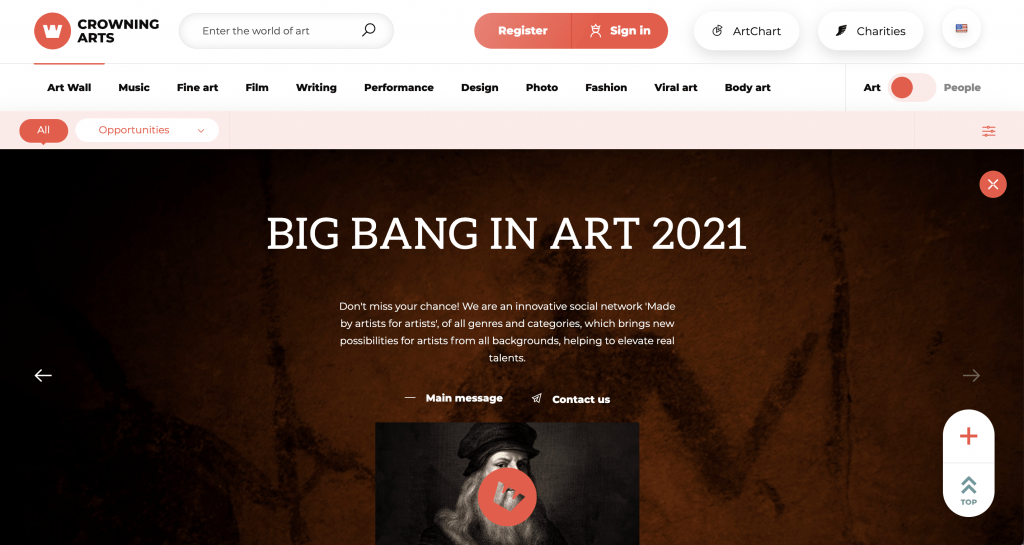 The Art Chart works like an auction, there are people from around the world who share their works and you can see the likes and crowns by the judges as well as the price of the piece of art or anything they’re sharing on the platform. Thanks to a special filter, you can easily find out the location of artists or individual contributions in specific countries, art categories, or according to evaluation criteria. Get to the forefront and your success in the ArtChart will surely make you famous!
