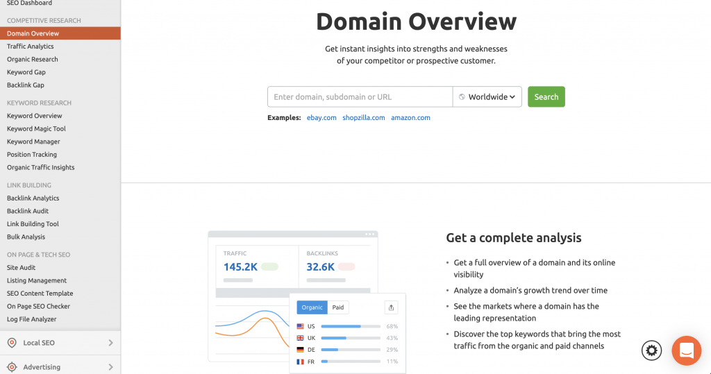 This tool is just a full performance overview for any website, you will get a an instant market overview: from top players to growth trends and automatically tracks your rivals’ moves: from new content to promo shifts.