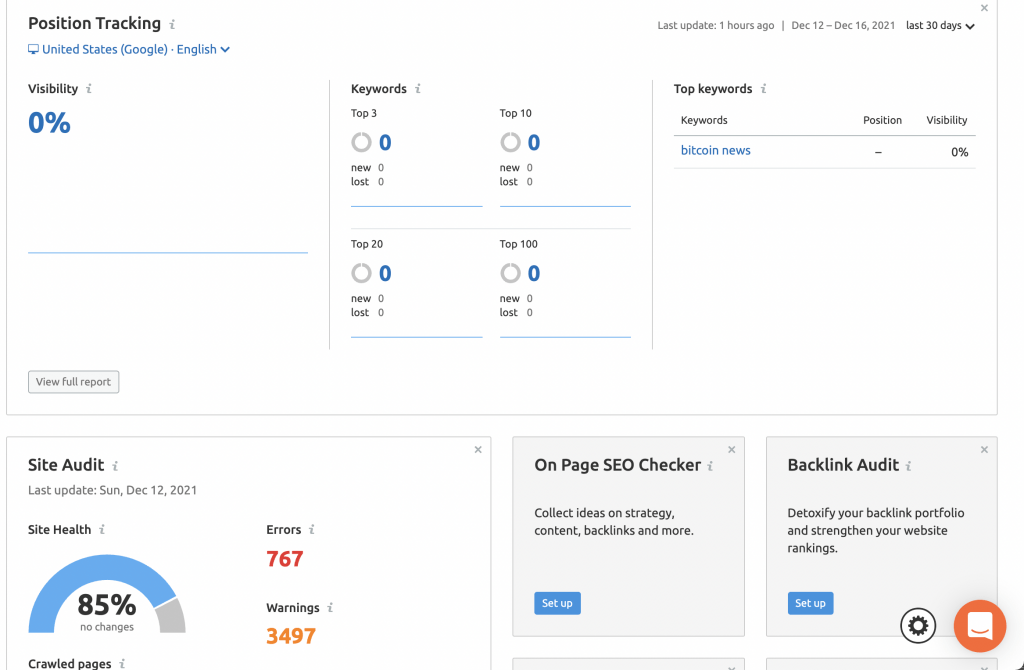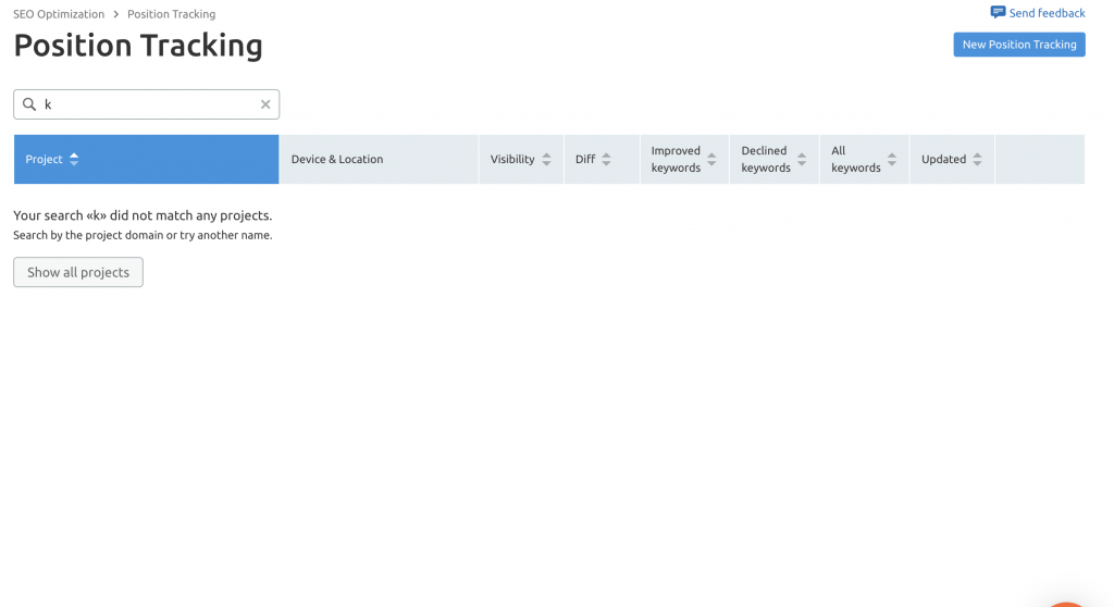 Each project has its own SEO panel so, what in other tools is called «Add project» or «Create new project», in SEMRush it is «New SEO panel»