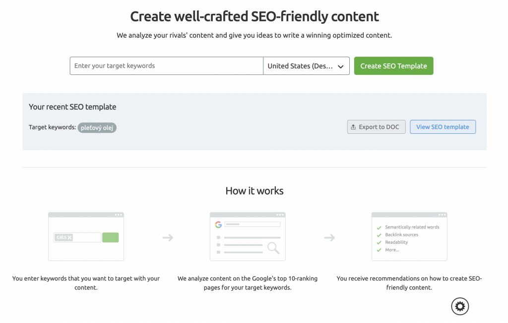 It is really easy to use this tool and perfect for Beginners as serves to analyse your competitor content and give you ideas to create an optimized content. You just have to enter the keywords that you want to target with your content and they will analyse them and then give you some recommendations.