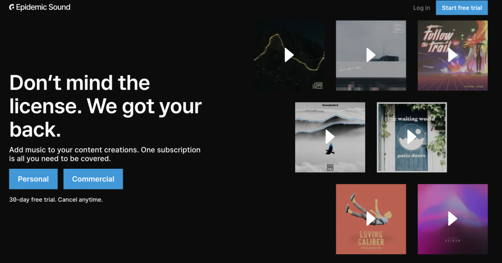 Epidemic Sound is a platform that offers attractive royalty-free background music for videos at a reasonable price. While it’s free to listen to their music, downloading and using Epidemic Sound’s music requires an active subscription or a single track license.