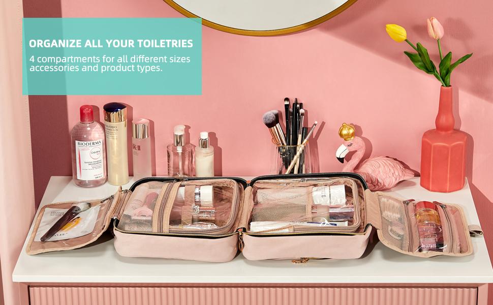 If you are eagerly looking for a toiletry bag to save your dressing table, gather your toiletries, or liberate yourself from organizational panic. NISHEL delivers exactly that! Therefore, NISHEL´s large travel toiletry bag boasts huge capacity with elegantly designed internal pouches, hanging hook, zipped pockets inside and out, and a detachable makeup pouch for complete flexibility.